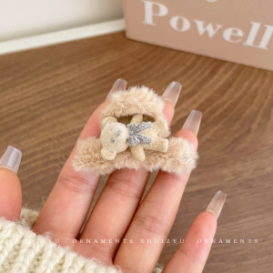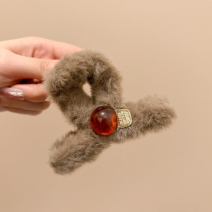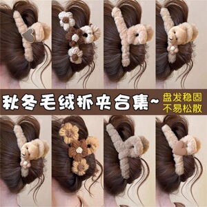 韩版夹子发量多美拉德抓夹小香风韩系发饰鲨鱼夹毛茸茸批发发夹女
