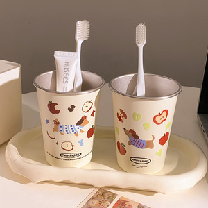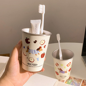 苹果小狗漱口杯浴室不锈钢刷牙杯牙缸可爱抗菌防霉牙杯情侣一对杯