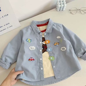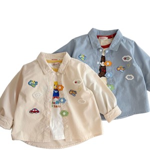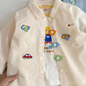 男童春秋季翻领飞机刺绣衬衣梭织棉儿童可爱衬衫日系男童上衣宝宝