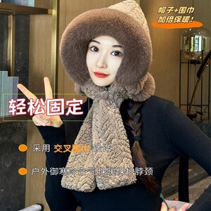 冬天帽子围巾一体毛绒保暖帽女加厚防寒护脖包头帽可爱护耳帽加绒