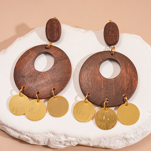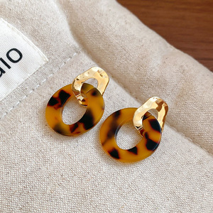 港风复古银针树脂圆形吊坠耳环简约时尚高级感耳圈个性潮流耳饰女