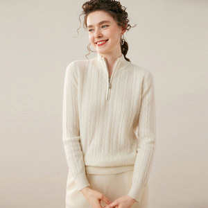 女士山羊绒衫半高领内搭打底修身显瘦半拉链毛衣秋冬新款重工提花