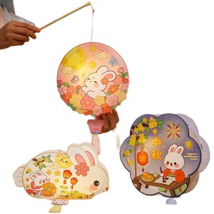 中秋节灯笼可涂鸦手提古风兔子发光宫灯幼儿园儿童手工diy材料包