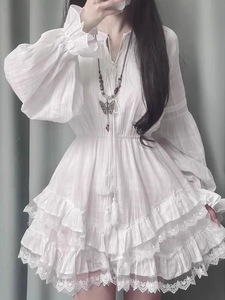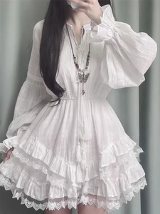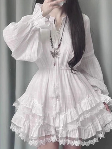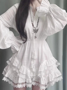 法式白色长袖薄款灯笼袖肌理感蛋糕裙连衣裙夏季短款仙女裙小个子