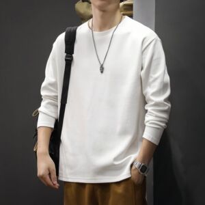 重磅精梳棉长袖T恤男圆领基础内搭打底衫纯色宽松百搭上衣潮批发