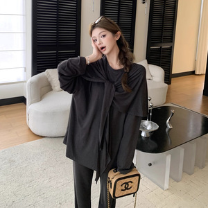 实拍 !披肩假两件慵懒百搭T恤女松弛感宽松休闲裤针织套装两件套