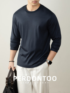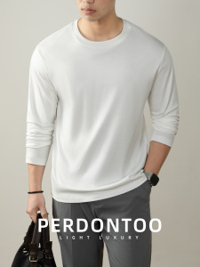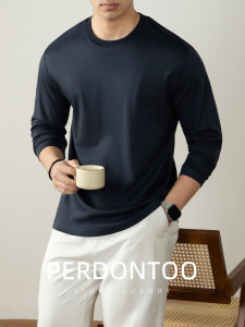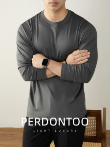 液氨•慕斯绒感棉双面T恤!高级磨毛纯棉圆领长袖打底衫男士秋冬