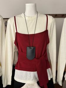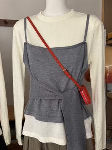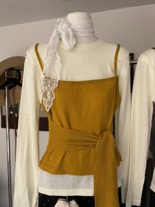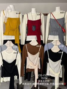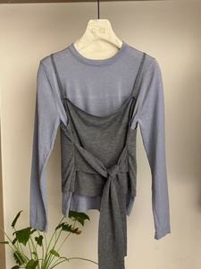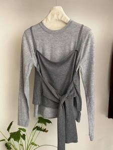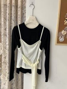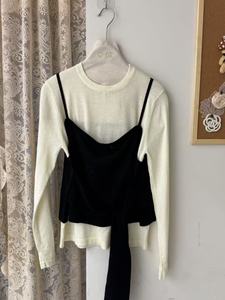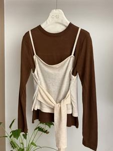 十三行早秋新款收腰系带假两件长袖针织衫女松弛感宽松休闲上衣