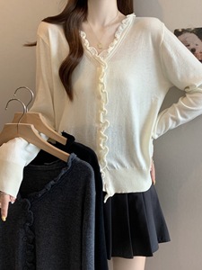 木兰 法式木耳花边针织开衫2025十三行秋季新款亲肤针织毛织上衣