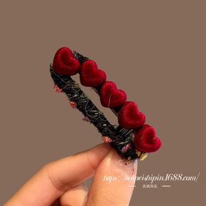 韩系秋冬新款毛毡撞色爱心发绳甜美毛线BB夹儿童BB夹高弹力发夹女
