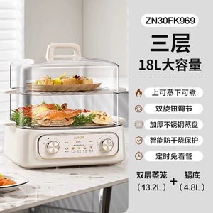 苏泊尔电蒸锅多功能家用三锈钢层大容量自动一体5新蒸箱