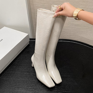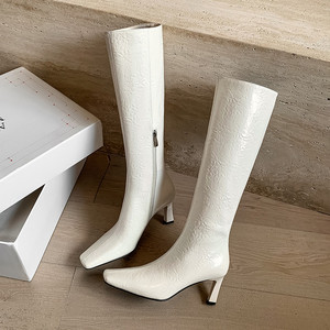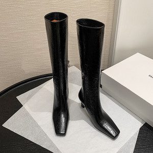 百搭显瘦细跟不过膝长筒靴女2025秋冬新款欧美时尚方头高跟时装靴