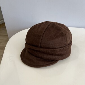 日系文艺褶皱毛呢报童帽女生秋冬复古保暖两用护耳简约鸭舌帽子潮