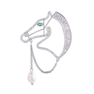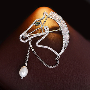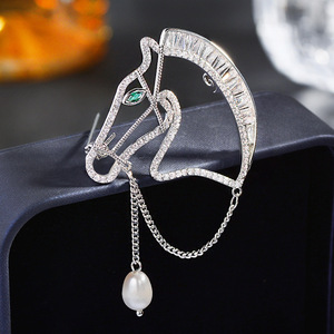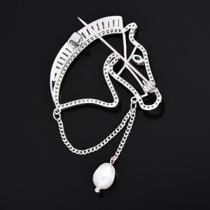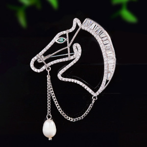 新款时尚简约镂空马胸针精致流苏淡水珍珠配饰高档生肖系列胸花