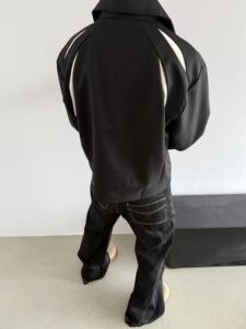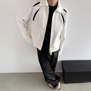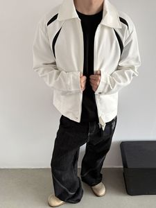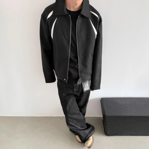 美式复古拼接条纹立领夹克男女款潮流高街运动宽松情侣开衫外套潮