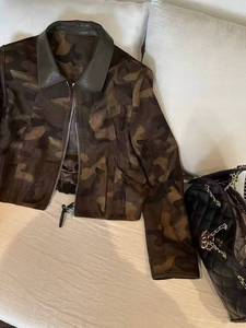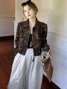 欧货翻领拼皮迷彩短款外套女2025秋季新款撞色立领拉链夹克上衣潮