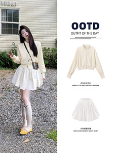 白色针织开衫外套女小香风上衣miu系千金风裙子套装韩系早秋穿搭