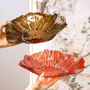 新款花型果盘轻奢沙拉水果盘高颜值糖果零食盘小众精美水果盘跨境