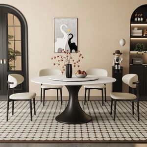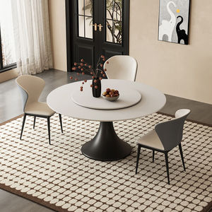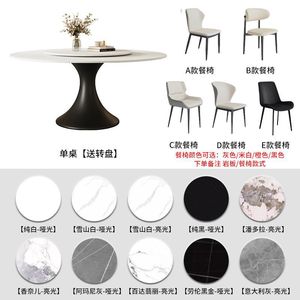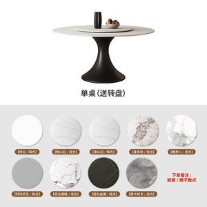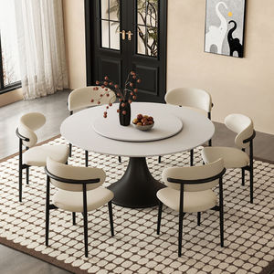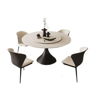 法式中古风岩板餐桌椅组合现代简约轻奢家用小户型圆形圆桌带转盘