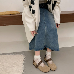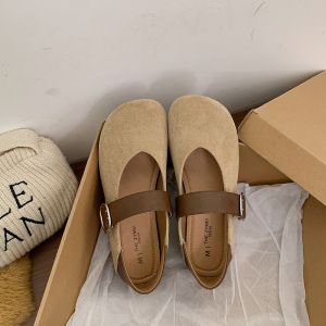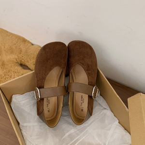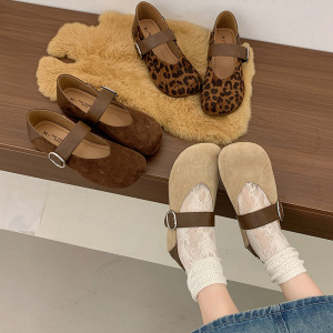 韩版圆头绒面一字带单鞋女2025新款秋季复古豹纹时髦玛丽珍小皮鞋