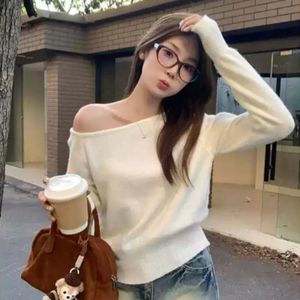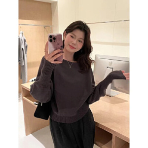 温柔风斜肩一字领灯笼袖针织衫女装2025韩系穿搭宽松别致小衫上衣