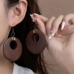 复古波西米亚木头耳环女小众设计感镂空大圈圈耳钩民族风夸张耳饰