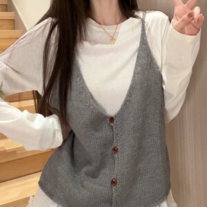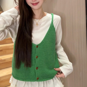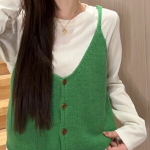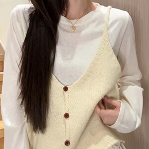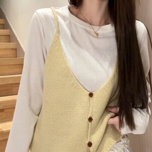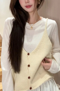 休闲百搭宽松慵懒感针织吊带背心女早秋时尚减龄小众设计别致上衣