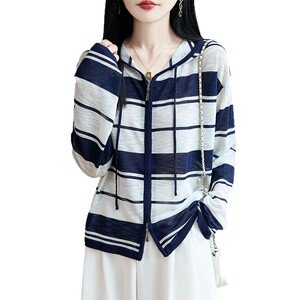 2025早秋新款女装针织衫外套女开衫拼色条纹显瘦长袖上衣女A6884