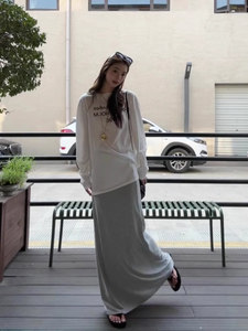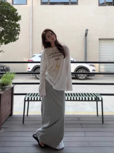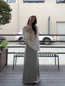 美式复古字母印花白色长袖T恤女夏季薄款外搭宽松防晒衫罩衫上衣