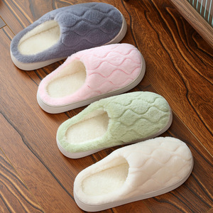 冬季棉拖鞋女可爱简约待客居家用室外保暖防滑情侣包跟棉拖鞋男
