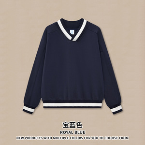 DE男装|跨境老钱V领380G纯棉卫衣Boxy短宽英伦撞色学院风卫衣男