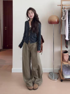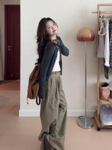 韩系氛围感早秋季穿搭灰色针织开衫上衣女装休闲慵懒毛衣开衫外套