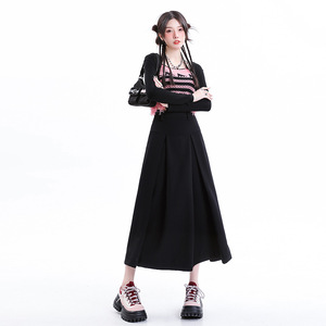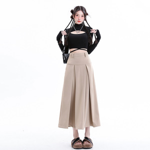 实拍现货卡其色百褶半身裙女2025春夏高腰中长款学院风西装百褶裙