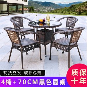 升级4大椅70黑色编藤圆桌(送坐垫)