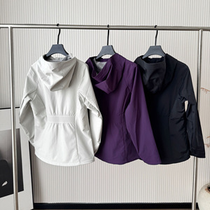 早秋新款户外运动日常休闲百搭薄绒连帽软壳冲锋衣外套女ss09019
