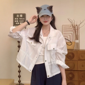 翻领防晒衣工装外套女短款2025夏季新款胖MM宽松显瘦休闲百搭上衣