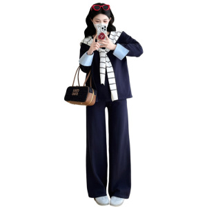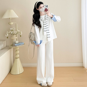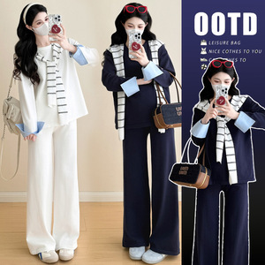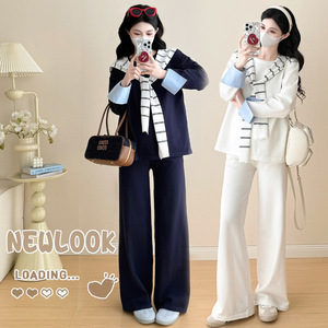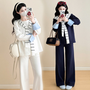 现货孕妇秋装套装2025新款休闲刺绣上衣+阔腿裤潮妈两件套送披肩