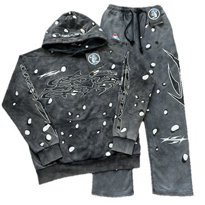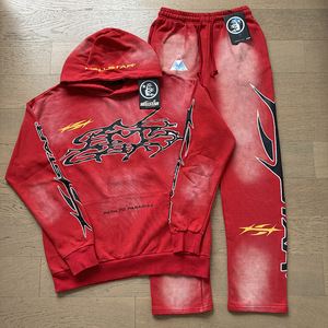 早秋新款跨境美潮ins同款复古印花高街潮流休闲连帽卫衣裤子套装
