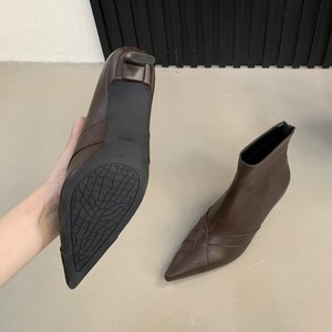 复古设计感短靴尖头粗跟靴子女2025新款短筒靴百搭女靴低跟瘦瘦靴