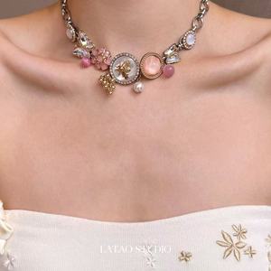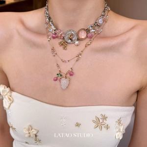 花落泪花朵樱桃项链女时尚配饰双层叠戴锁骨链辣妹甜酷几何首饰潮