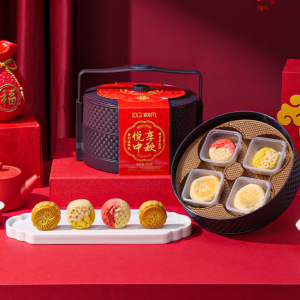 刻凡悦享中秋两层提篮月饼礼盒八枚装广式月饼中秋月饼礼盒团购