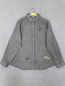 日系纯棉双层纱刺绣衬衫感文艺复古上衣春秋季休闲2025新款女装