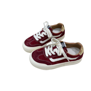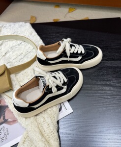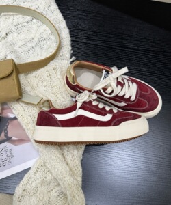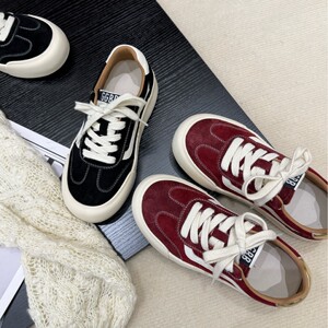 显脚小~复古真皮红色德训鞋女2025秋款小众百搭拼色休闲运动板鞋