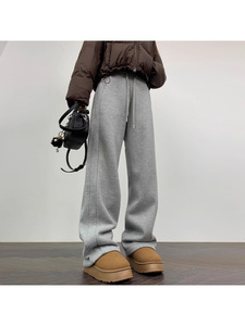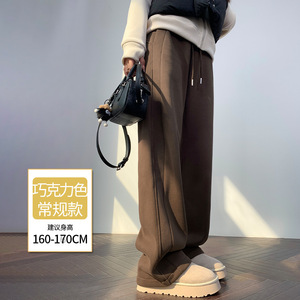 运动裤女秋冬季2025新款小个子高腰显瘦休闲卫裤子加绒直筒阔腿裤