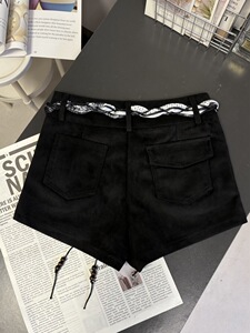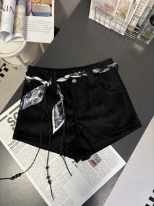 韩版时尚百搭系带高腰显瘦鹿皮绒短裤阔腿裤休闲裤靴裤女秋冬新款