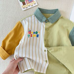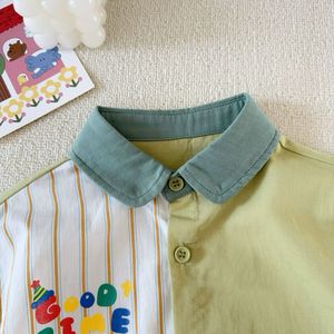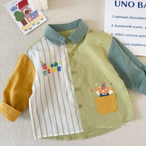 春秋儿童新品翻领衬衫男童宝宝可爱长袖拼接上衣儿童百搭款棉衬衣