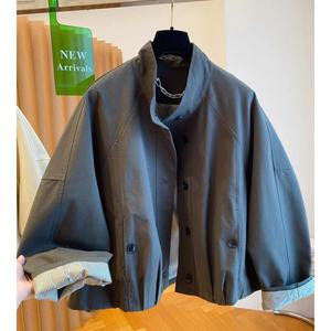感韩系立领撞色工装外套女秋季新款风衣港风休闲流行