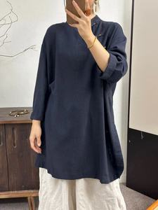 秋季新款时尚宽松复古港风休闲中国风立领中长款复古通勤连衣裙