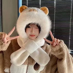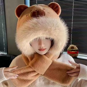 卡皮巴拉毛绒帽女秋冬可爱时尚氛围感帽子围巾一体帽加厚保暖护耳