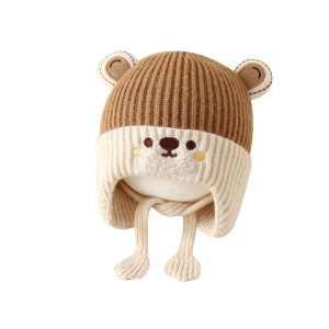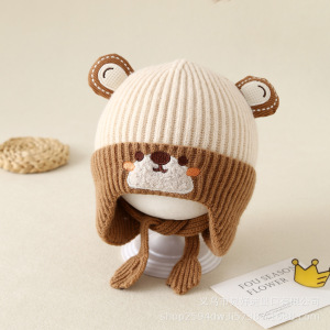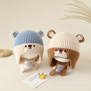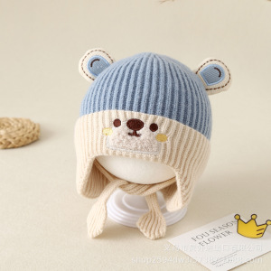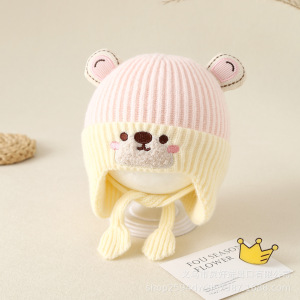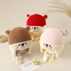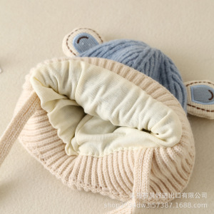 宝宝帽子冬季女童卡通套头帽可爱小男孩针织毛线帽儿童保暖护耳帽